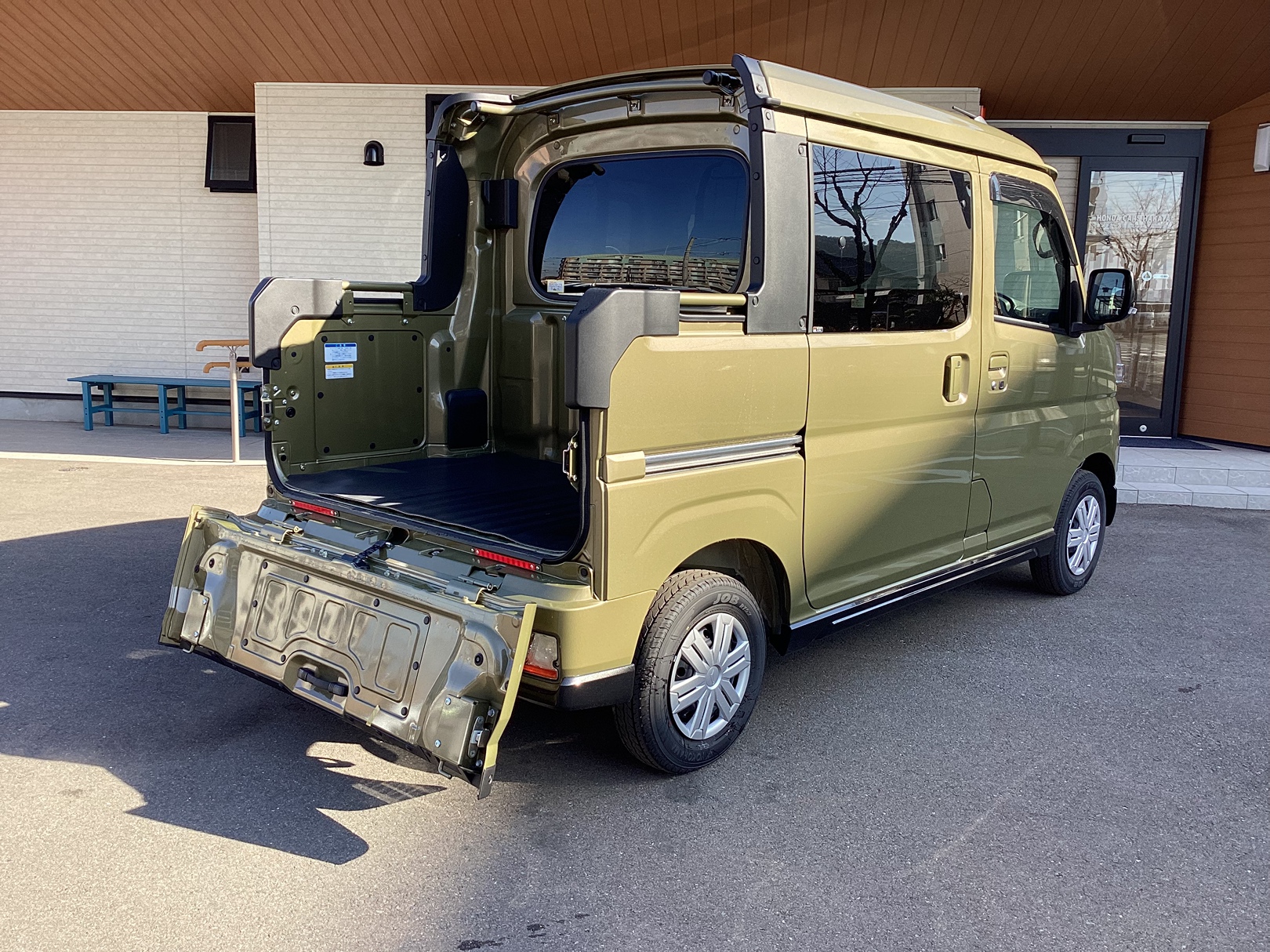 4名乗り、オープンデッキ付。泥だらけになったキャンプギアや、クーラーボックスなどを、室内の汚れや匂いなどを一切気にせず積み込めます。